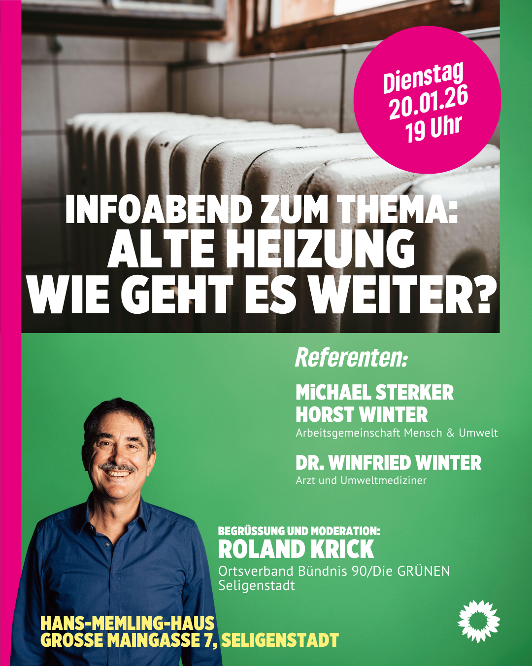 💚 Gemeinsam Verantwortung für Seligenstadt: Vorstand und Fraktion Hand in Hand 17. April 202617. April 2026 Die Seligenstädter GRÜNEN haben auf ihrer gut besuchten Mitgliederversammlung ein starkes Zeichen des Aufbruchs gesetzt: Judith Friedrich-Weber und Thorsten Bonifer wurden einstimmig zur neuen Doppelspitze gewählt. Komplettiert wird der geschäftsführende… Klimaschutz scheitert in Seligenstadt nicht an Förderprogrammen, sondern am politischen Willen 5. Februar 20261. März 2026 Am Ende der Legislaturperiode zieht die Fraktion Bündnis 90/Die Grünen im Stadtparlament eine ernüchternde Bilanz zum kommunalen Klimaschutz. „Die Koalition aus CDU und FDP ist mit dem Anspruch angetreten, konsequenten… Zum Blog-Archiv