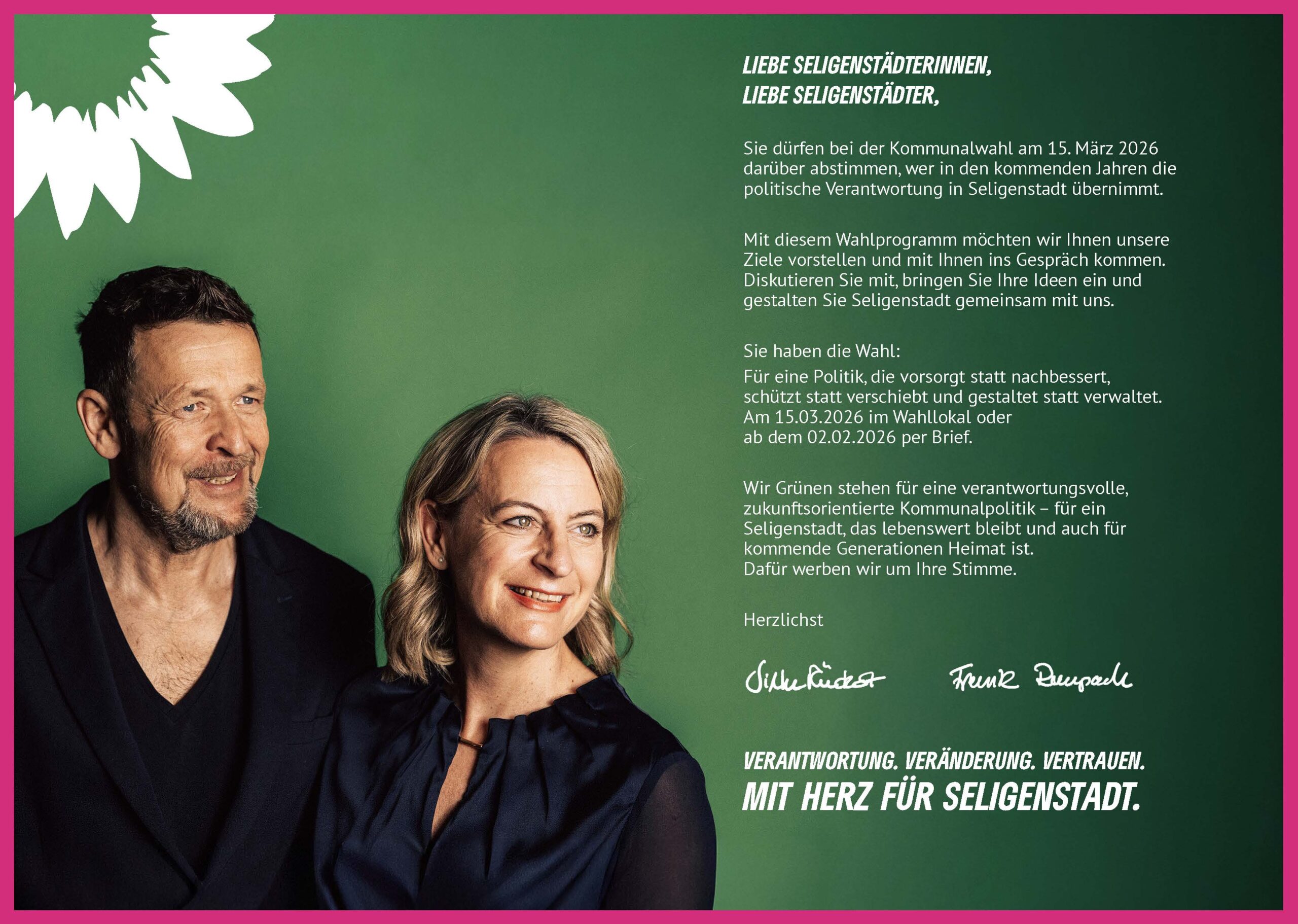 „Ein Seligenstadt, das auch in kommenden Generationen Heimat bleibt. Mit Vorsorgen statt Nachbessern, Schützen statt Verschieben und Gestalten statt Verwalten.“